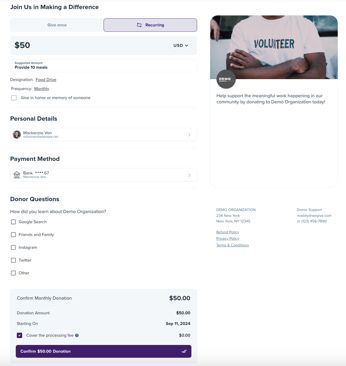 WeGive gives you the option to create Multi Page or Single Page checkouts.