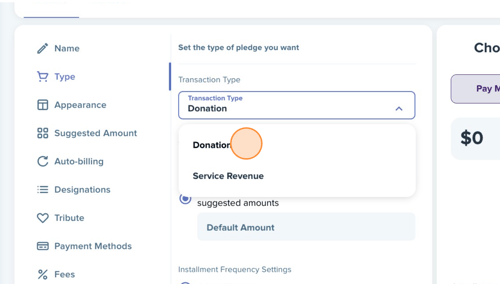 Default Amounts: Select none, 3, or 6 suggested amounts to display.