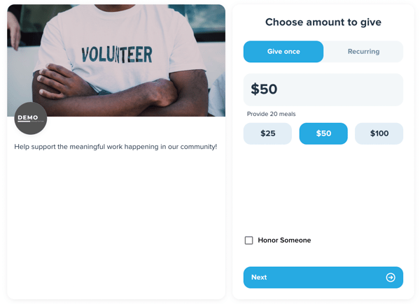 One of the first things you'll do once you land on your WeGive Dashboard is customize your Default Checkout and Donor Portal that will live under your organization's primary "Donate" and "Login" buttons.